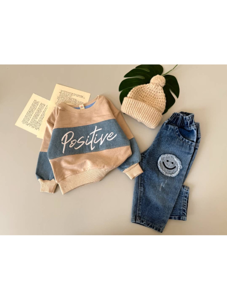 Creamy denim mix with written design