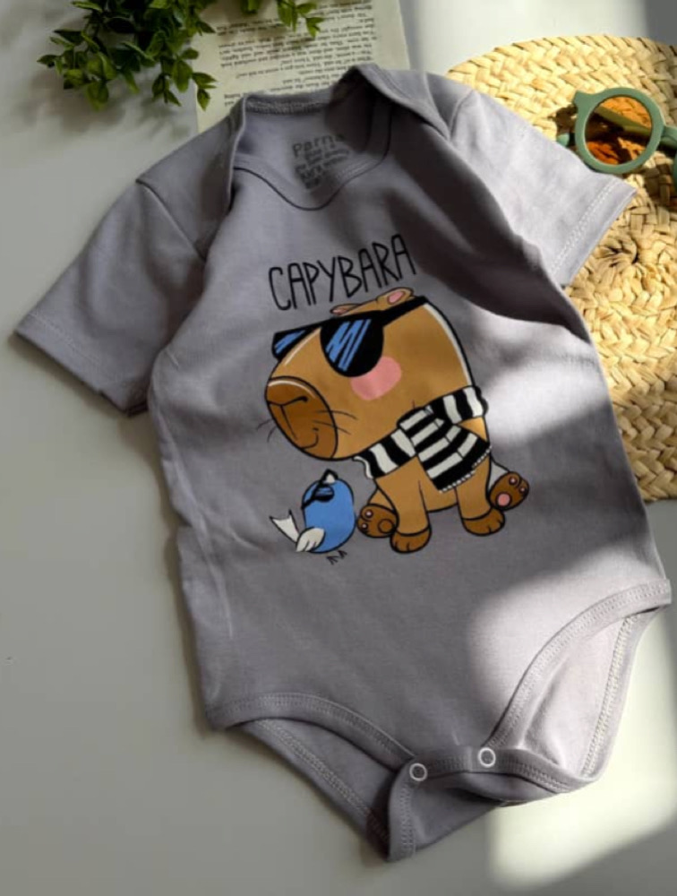 زیردکمه آستین کوتاه طوسی طرح اسب آبی