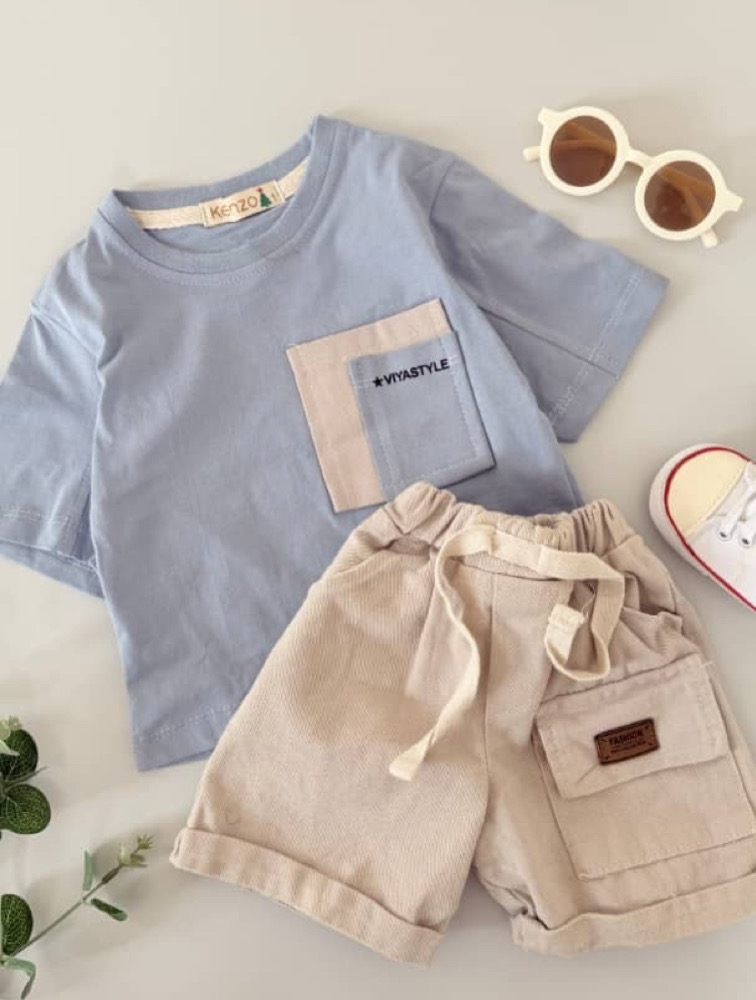 ست تیشرت شلوارک جیب دار آبی آسمانی