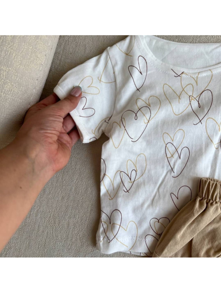 ست تیشرت و بیلر کرمی طرح قلب