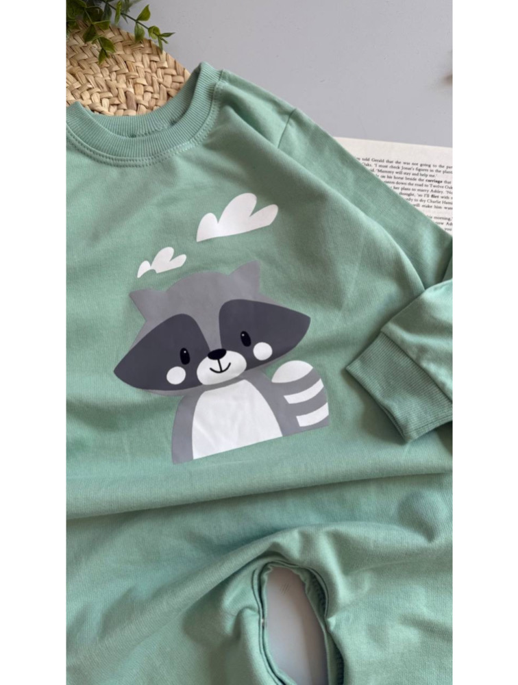 Green lemur pattern jumpsuit