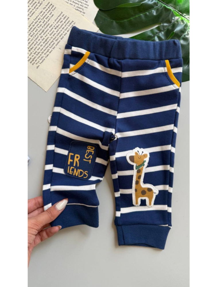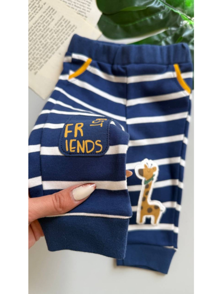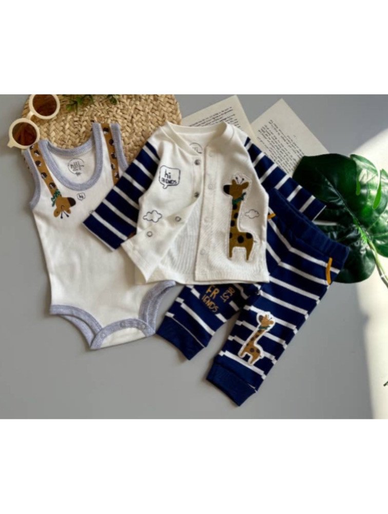 Three-piece indigo giraffe design