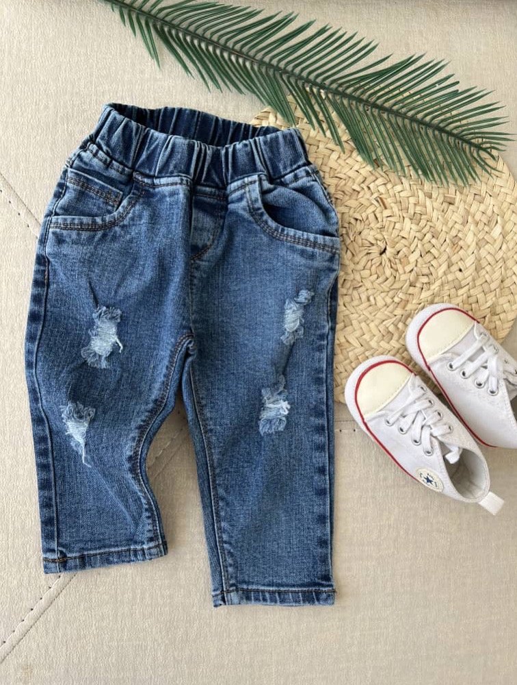Mom fit dark blue jeans with zipper