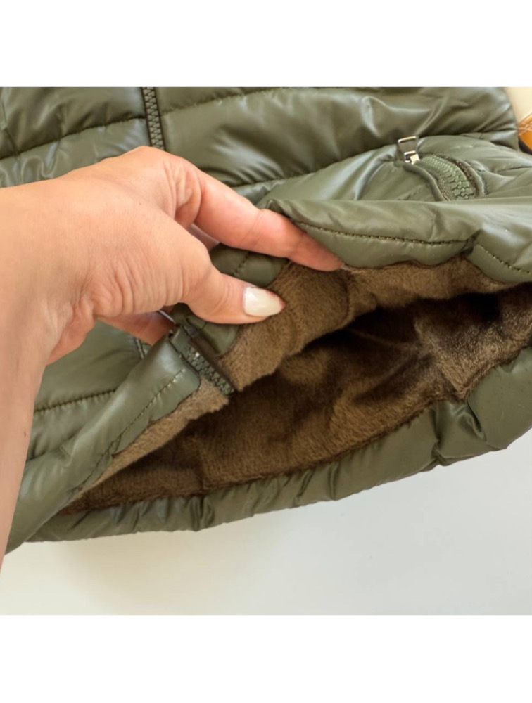 Green puffer with rabbit hat