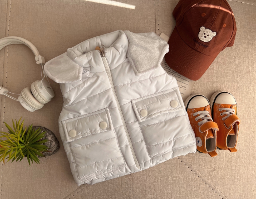 پافر کلاه خرگوشی جیب دگمه سفید