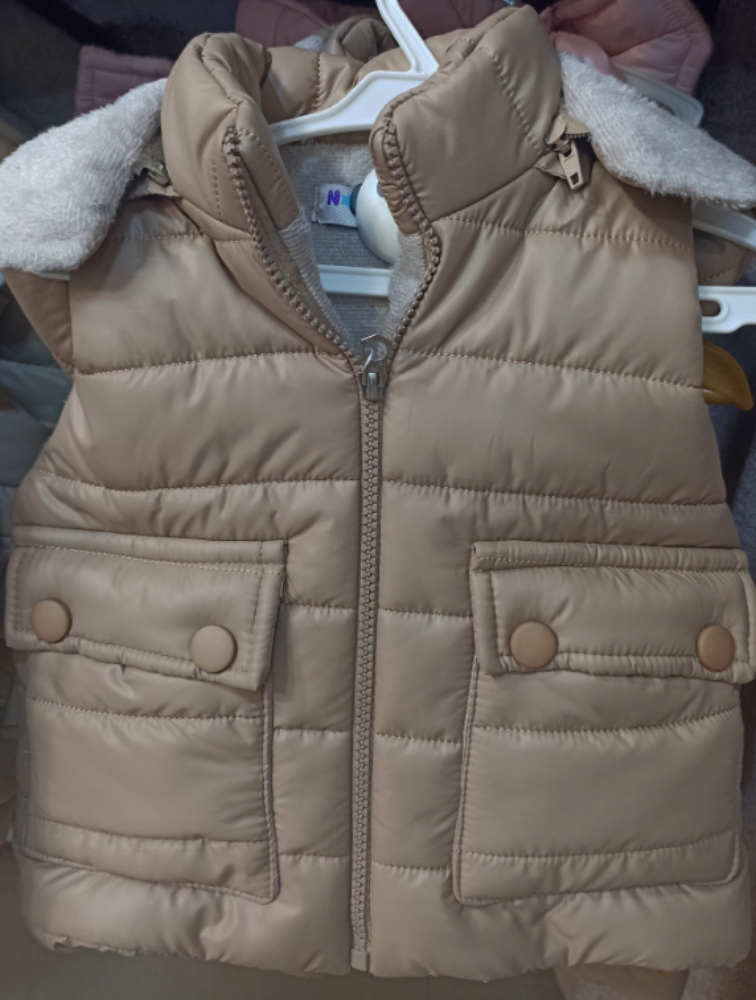 پافر کلاه خرگوشی جیب دگمه نسکافه ای