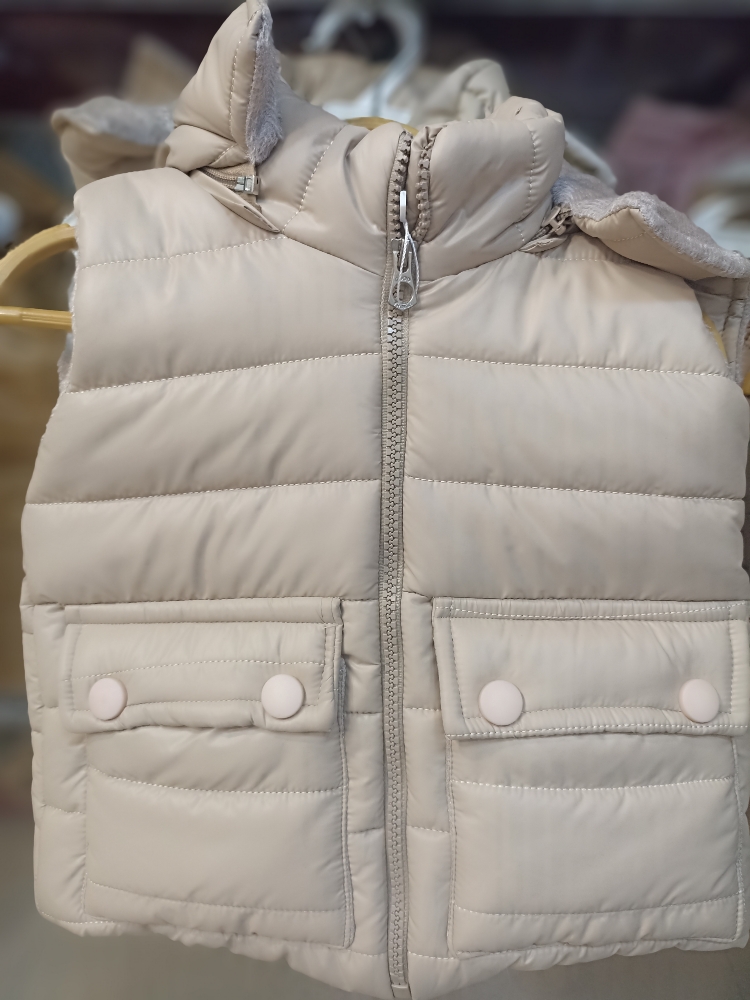 پافر کلاه خرگوشی جیب دگمه کرمی