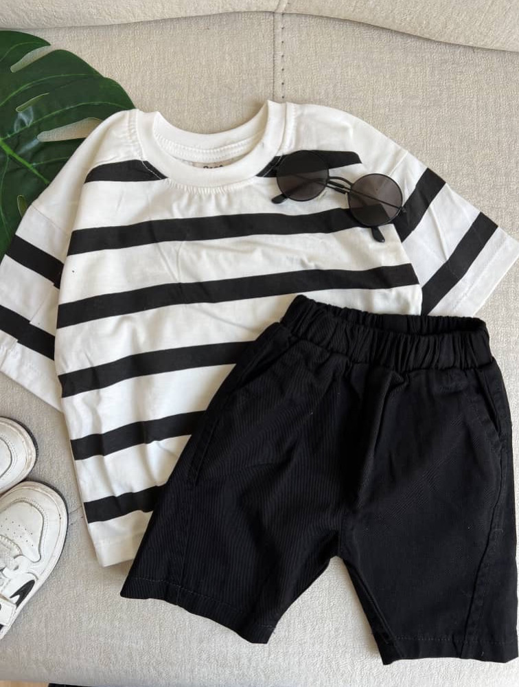 تیشرت شلوارک راه راه مشکی