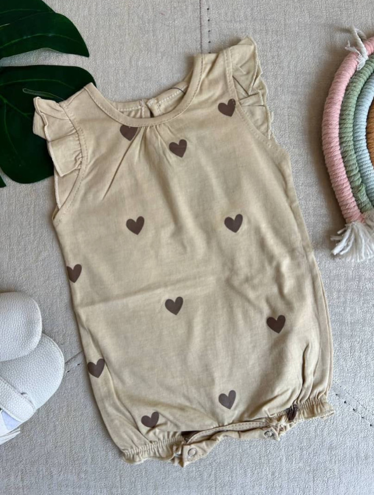 Creamy heart pattern romper