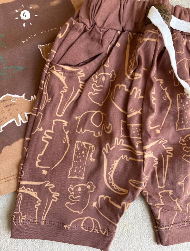 ست تیشرت و شلوارک طرح حیوانات جنگل