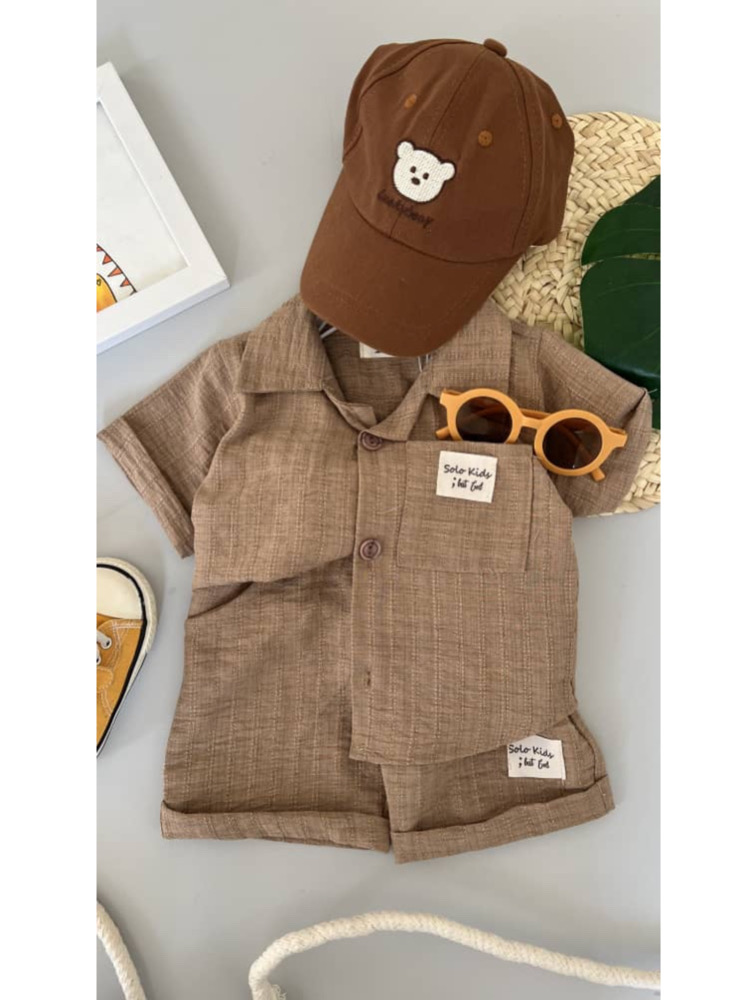 ست پیراهن و شلوارک پسرانه نسکافه ای