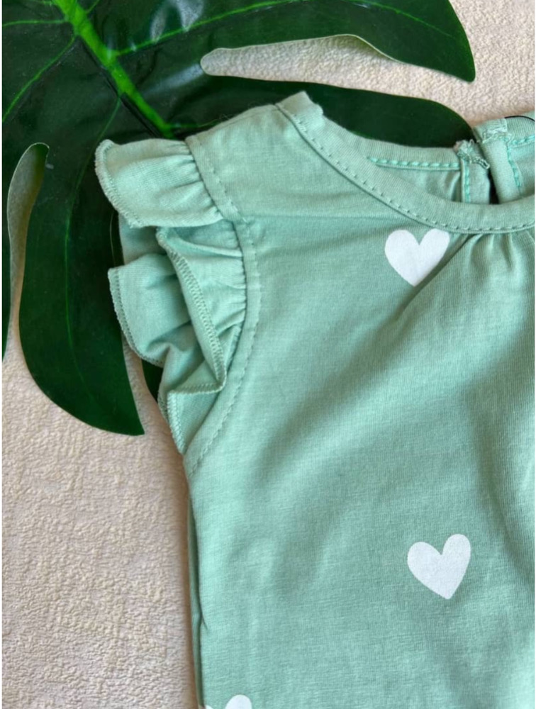 Pastel green heart pattern romper